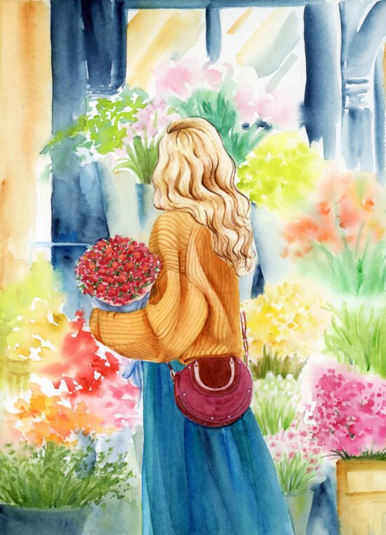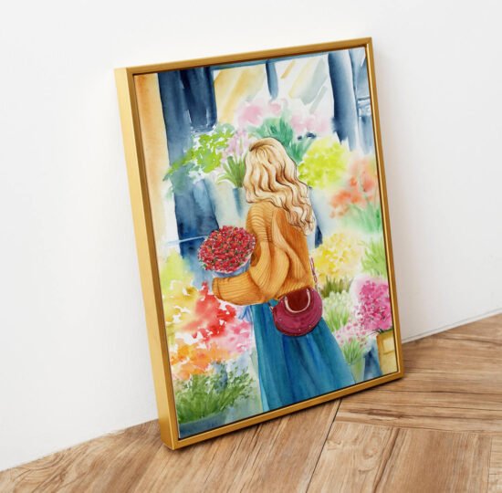 This original watercolour painting is a beautiful portrait of a young girl with her orchid crown that makes her look just like a goddess.